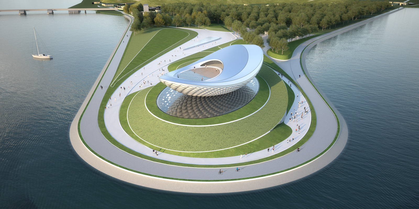 The building combines old and new, a handcrafted brick podium and an organic roof feature designed to.